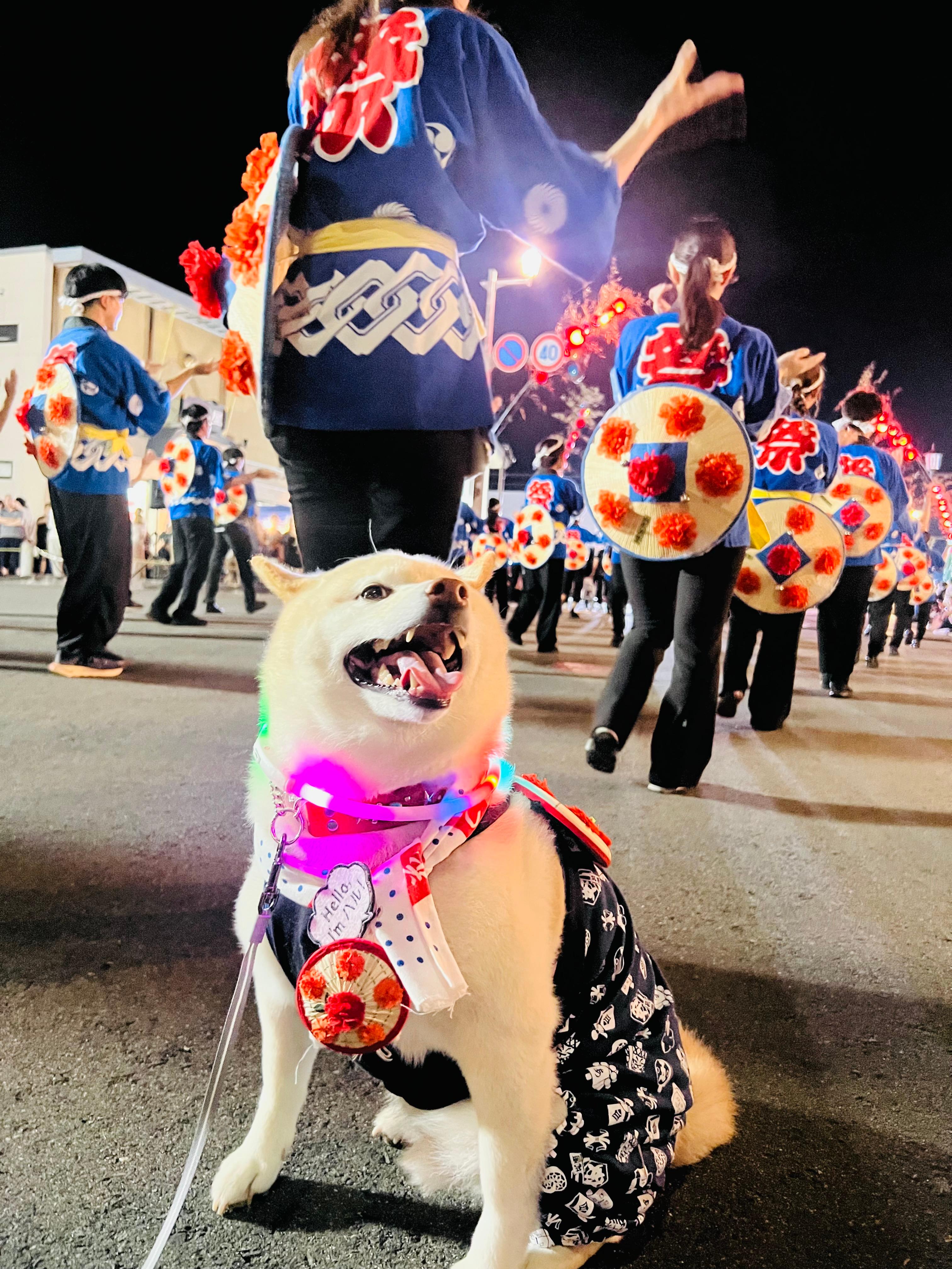 作品名『青竹ちょうちんまつり2025』 投稿ネーム サエコ さん 作品エピソード お祭りで沢山の人にナデナデしてもらい大満足の犬息子。踊り手さんの邪魔にならないように撮影させていただきました。ペットウェルカムな地元高畠町が大好きです |