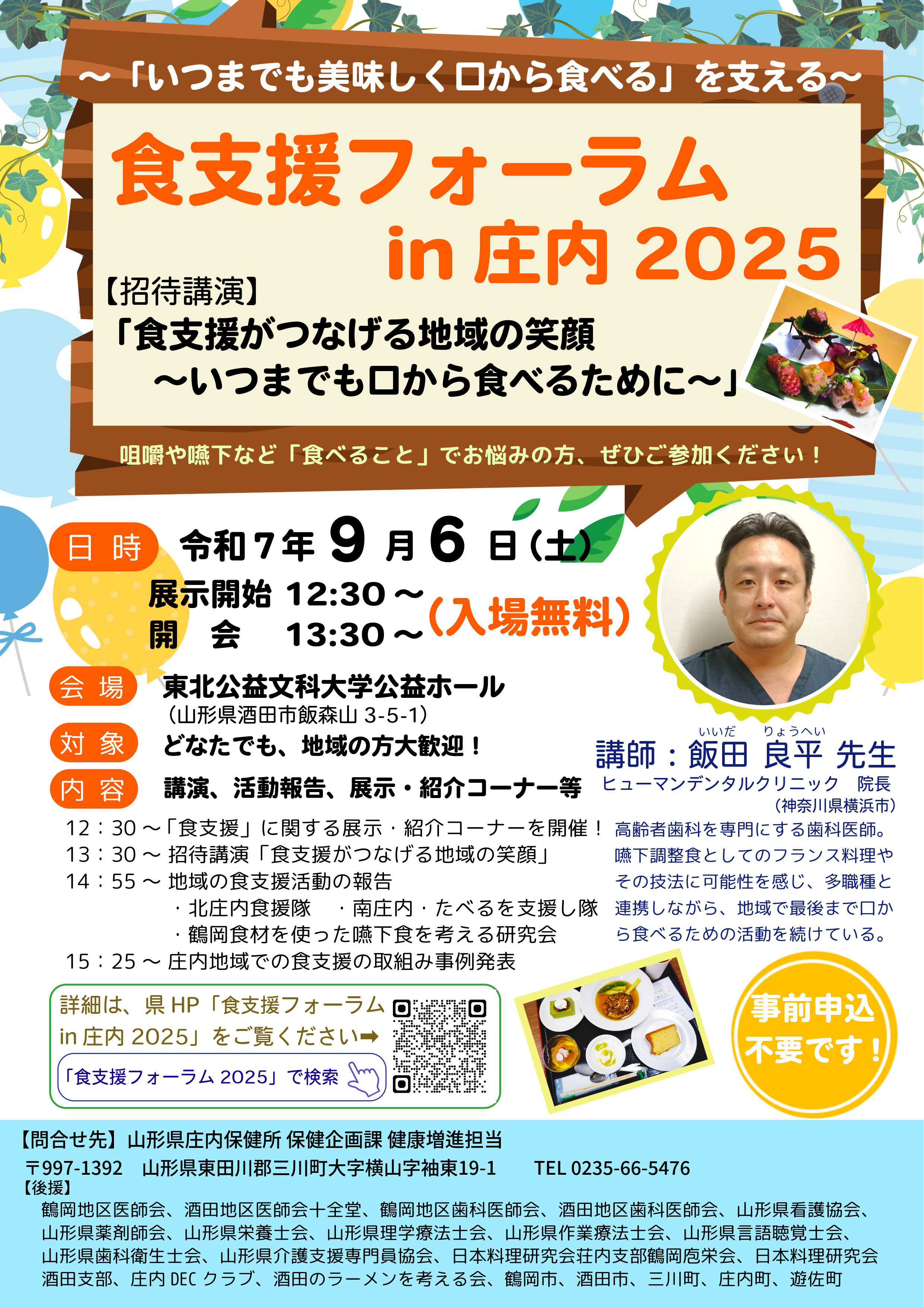 ホーム > 県政情報 > 山形県の紹介 > 組織案内 > 庄内総合支庁保健福祉環境部 > 保健企画課 > 健康づくり・栄養食生活情報 > 食支援フォーラムin庄内2025
